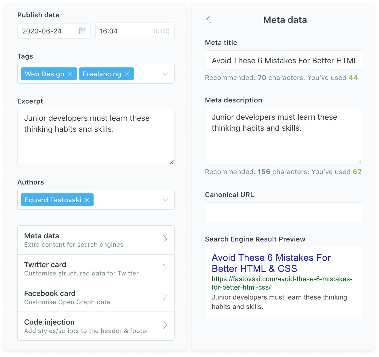 Needless to say, SEO is incredibly important for bloggers. And I’m happy to say that the SEO options provided with Ghost are excellent.