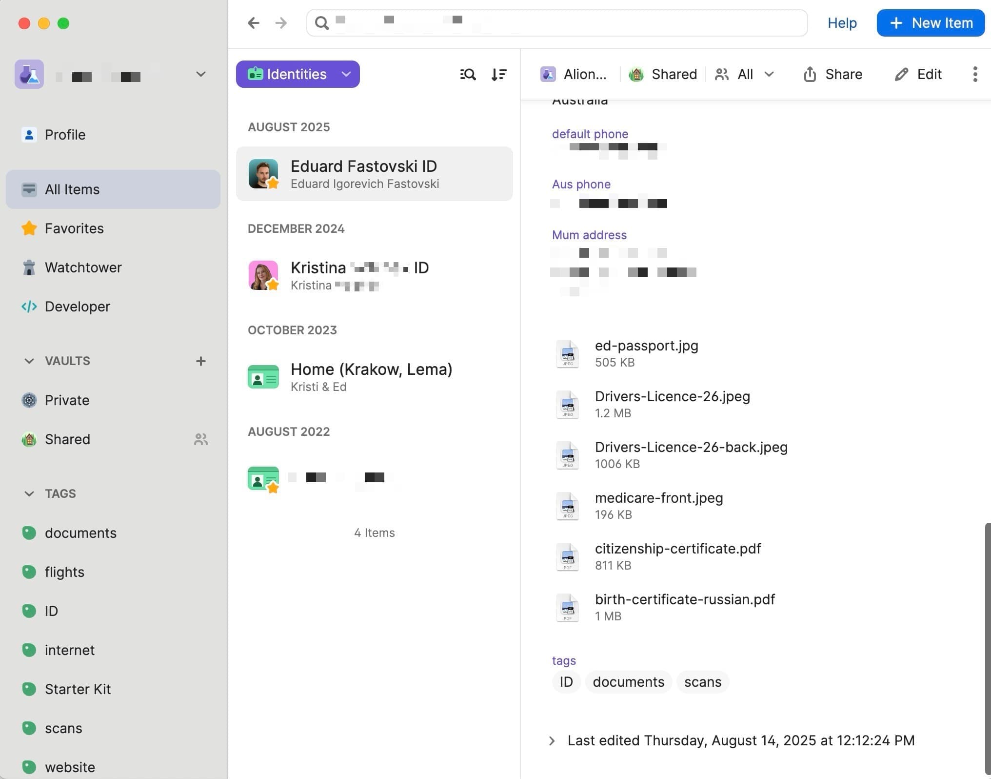 This is a password manager and document vault that I share with my girlfriend. It contains all our important stuff: