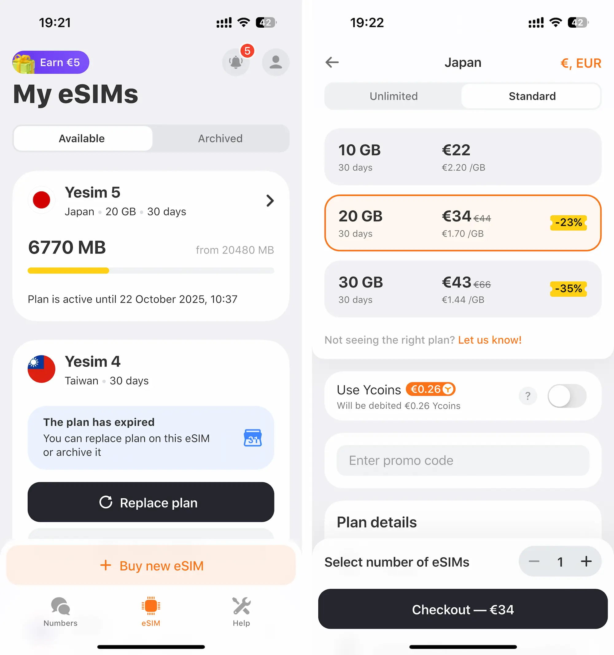 The two most popular eSim providers are Yesim and Airalo.